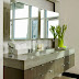 Consider extending the backsplash tile up to the ceiling behind the vanity for a dramatic effect, especially effective with double sink installations.